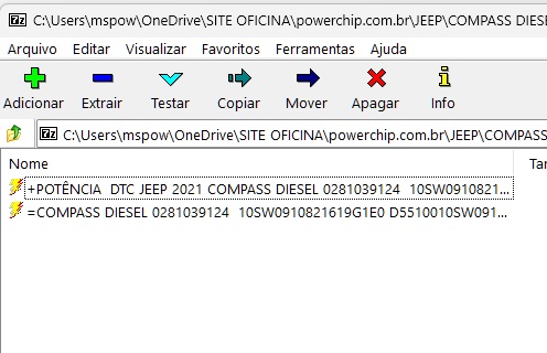 JEEP 2021 ARQUIVO POTÊNCIA E ORIGINAL COMPASS DIESEL 0281039124 10SW0910821619G1E0 D5510010SW091082.